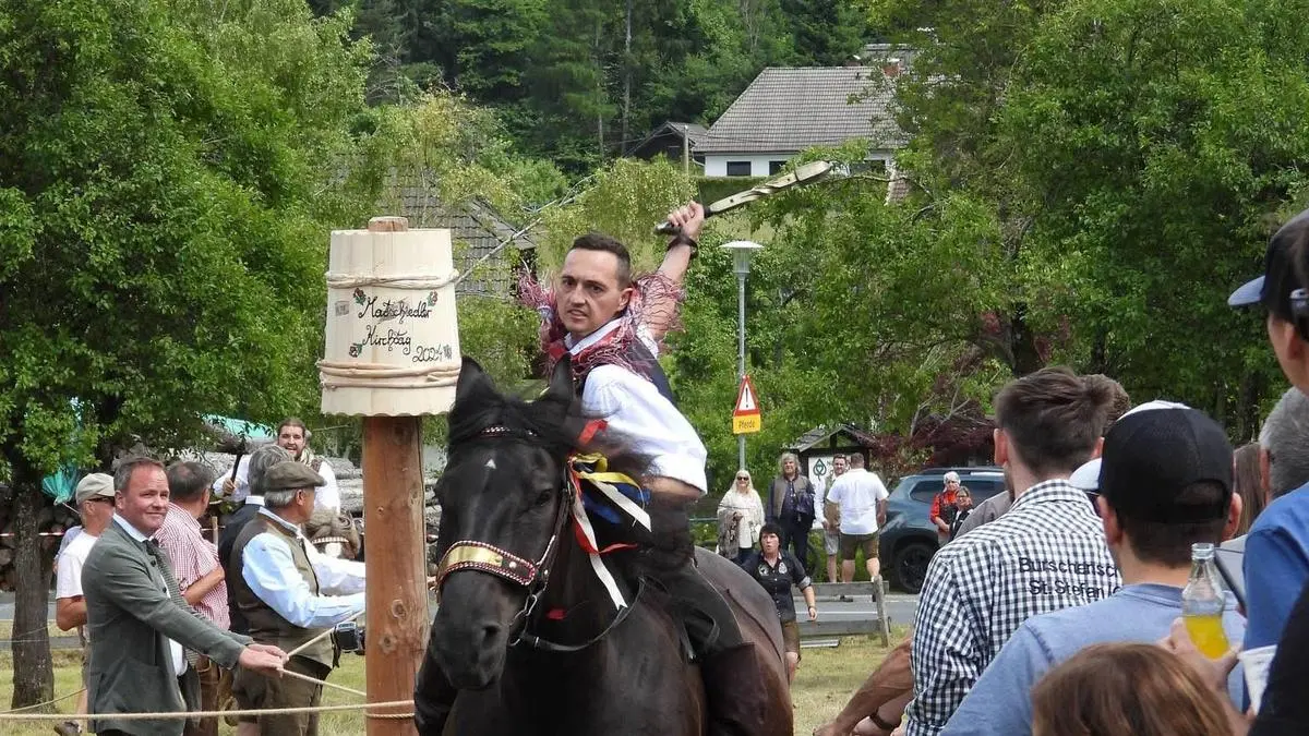 Mit dem bevorstehenden Kirchtag in Matschiedl beginnt am kommenden Sonntag, dem 15. Juni, die Saison einer einzigartigen Brauchtumsveranstaltung im Gailtal: das Kufenstechen. Der jahrhundertealte Brauch, dessen genauer Ursprung bis heute unbekannt ist, ist Teil vieler Gailtaler Kirchtage. Seit 2018 zählen diese samt dem Kufenstechen offiziell zum immateriellen UNESCO-Kulturerbe. Höhepunkte sind neben der gemeinsamen Kirchtagsmesse das Reiten und Stechen mit dem Schlegel – und schließlich der stimmungsvolle Lindentanz. Das Kufenstechen ist ein Wettbewerb, bei dem junge Männer hoch zu Ross mit einer Eisenkeule auf ein Holzfass, das „Fasel“, einschlagen. Dabei sitzen die Reiter, ausnahmslos Männer, auf ungesattelten Norikern. Ziel ist es, das Fass zu zerschlagen. Dem Gewinner winkt ein Blumenkranz und die Bewunderung der Zuseherinnen und Zuseher.
