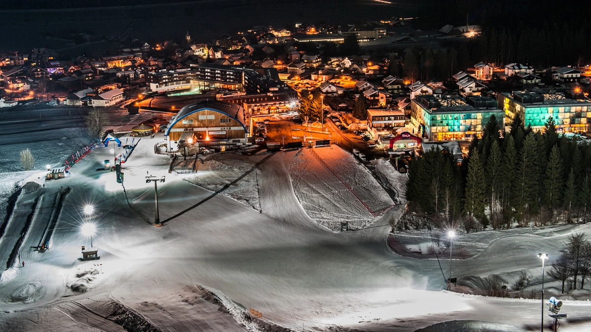 Eine Skipiste | Die Pisten sind gut ausgeleuchtet