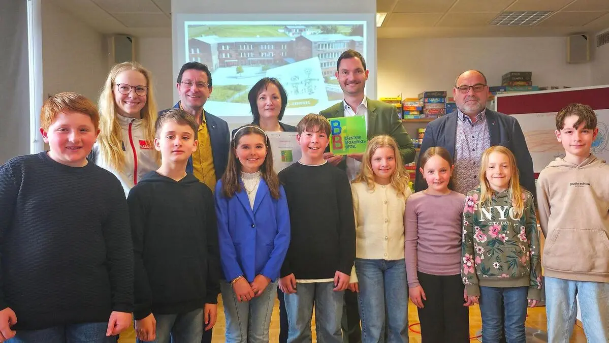 Schüler und Schülerinnen des Bildungszentrums Rennweg nahmen das Begabungssiegel von Landesrat Peter Reichmann entgegen
