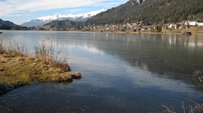 Auf dem Weißensee wächst eine dünne Eisschicht. Anhaltende Minustemperaturen beschleunigen das Wachstum.