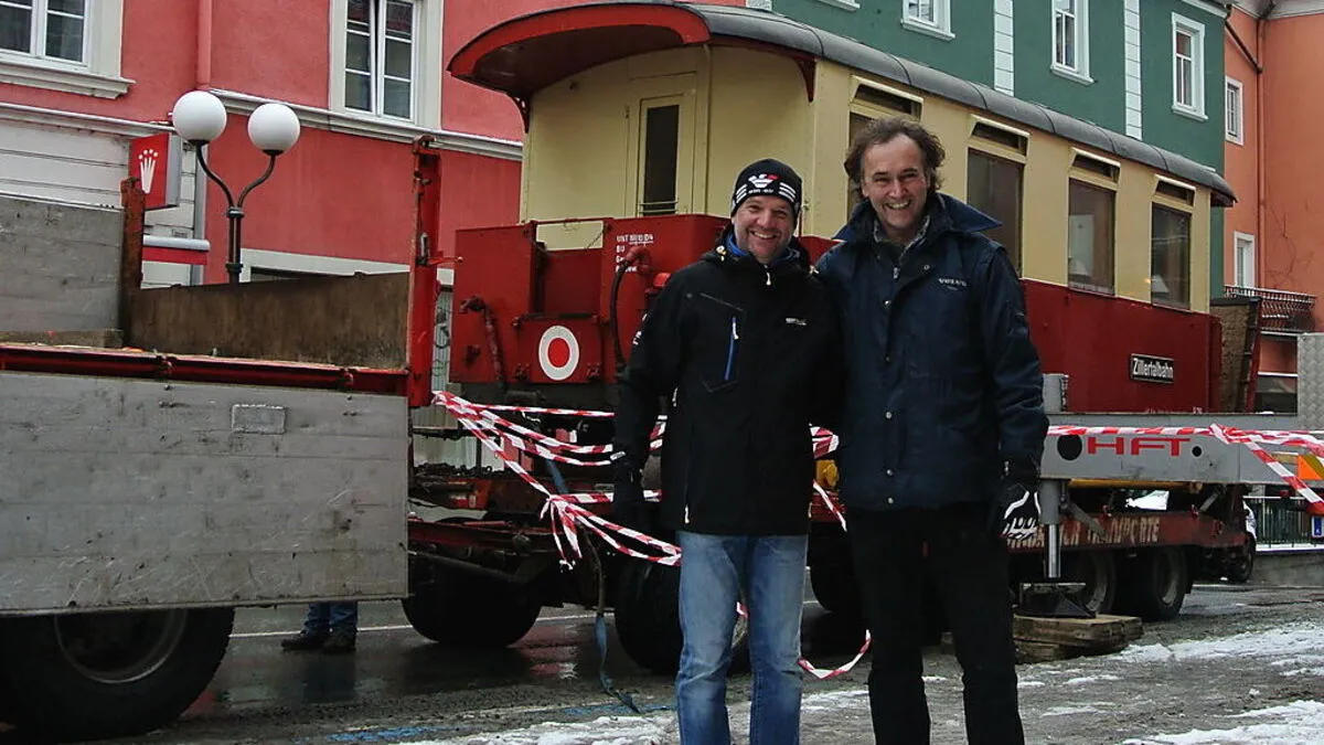 Mit großem Aufwand haben Sepp Nothegger und Udo Kröll heute die neueste Attraktion des Hotel Post ErlebnisArt vor dem Haus am Hauptplatz platziert. Ein originaler Buffetwagen der Zillertalbahn sorgt seit heute für Aufsehen.