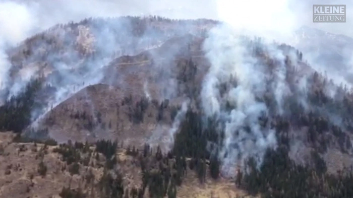Auf dem Plankogel unterhalb der Göriacher Alm ist Mittwochabend ein Waldbrand ausgebrochen. 75 Hektar Wald stehen in Flammen, sieben Hubschrauber fliegen Löscheinsätze.