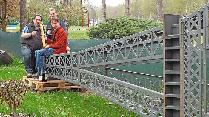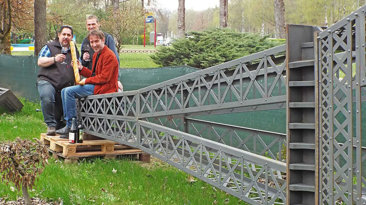 Gut gelandet ist der Eiffelturm am Wörthersee: Hannes Bostjanèiè, Rainer Wegscheider und Geschäftsführer Hannes Guggenberger (von links) freuen sich über den zweiten Turm für Minimundus