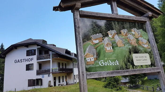 „Hier entsteht das Almdorf Goldeck“, steht auf dieser Tafel groß geschrieben und auch wo sich Interessenten informieren können. Doch fix ist das alles noch nicht