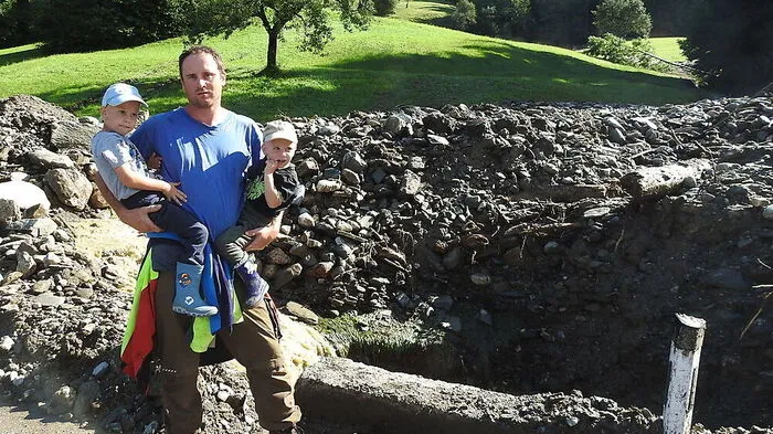 Stefan Spanz aus Fresach wurde bei Aufräumarbeiten von der Mure in Fresach überrascht. Im letzten Moment konnten sich er und sein Vater vor dem Wasser und den Geröllmassen in Sicherheit bringen.