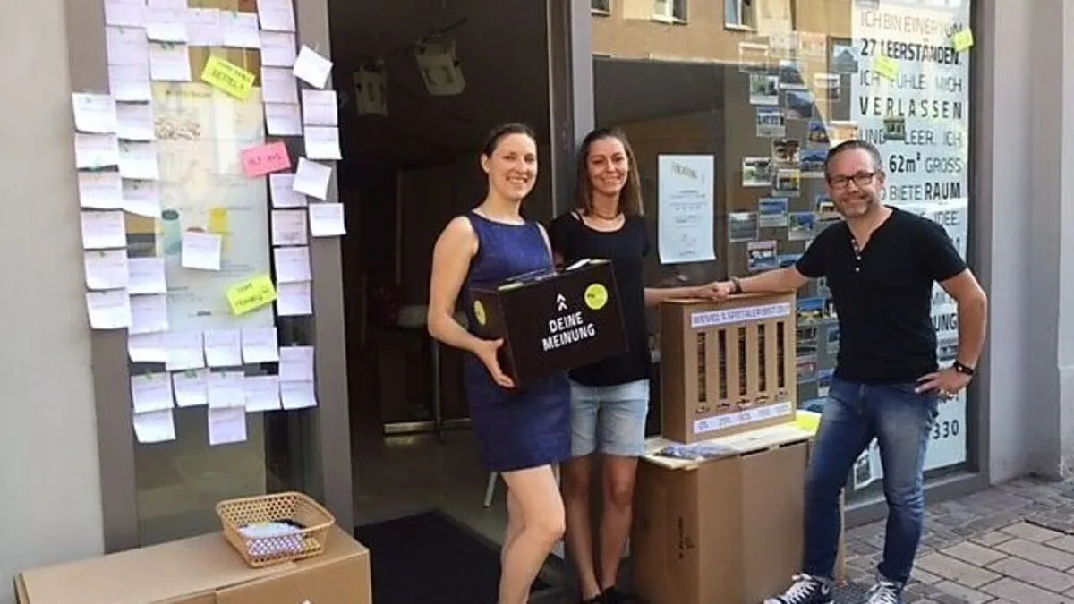Am Hauptplatz warten Architektur-Studenten auf viele Besucher