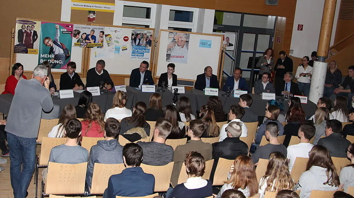 Hermagors Schüler diskutierten mit den Spitzenkandidaten der Landtagswahl über die Zukunft Oberkärntens. Am Montag gibt es eine schulinterne Wahl. Dann zeigt sich, welcher Kandidat die Nase vorne hatte.