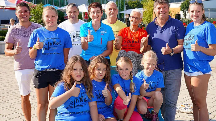 Stadtrat Christian Klammer, Carina Bodner, Josef Schretter, Susanne Duschek-Fercher, Joachim Kumnig, Sigrid Eisenhuth, Gerhard Pirih, Chantall Hatzenbichler. Kinder vorne von links: Nina Thaler, Laura Thaler, Lena Schweiger und Lena Wirnsberger.