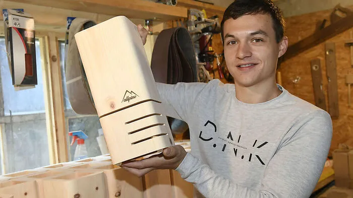 Vincent de Bois, ein begabter Handwerker, baut in Dellach/Drau duftende Zirbenholzlampen.