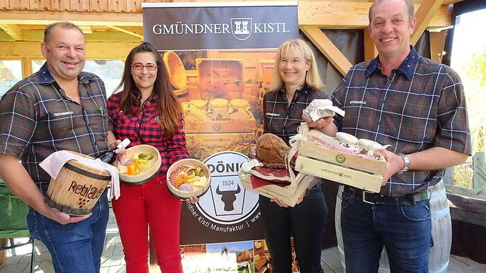 Harald Mölzer, Angelika Stranner, Angelika Mölzer und Emmerich Preiml mit dem Gmündner Kistl