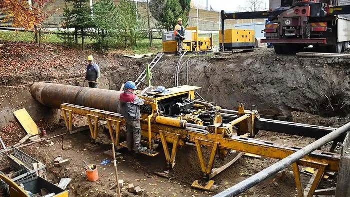 Mit einem Pressdruck von rund 150 Tonnen werden derzeit in Spittal nahe der Bahnunterführung zwischen Liesersiedlung und Merck Rohre ins Erdreich getrieben. Im Zuge der Kanalsanierung sind solche „Rohrpressungen“ nötig, wenn der Kanal unter Bahngleisen hindurch verlegt werden muss.