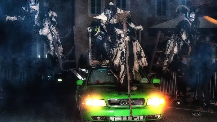 Perchten suchen Zeugen, die beobachtet haben, wer ihr „Show-Auto“ nach dem Perchtenumzug in Hermagor beschädigt hat.