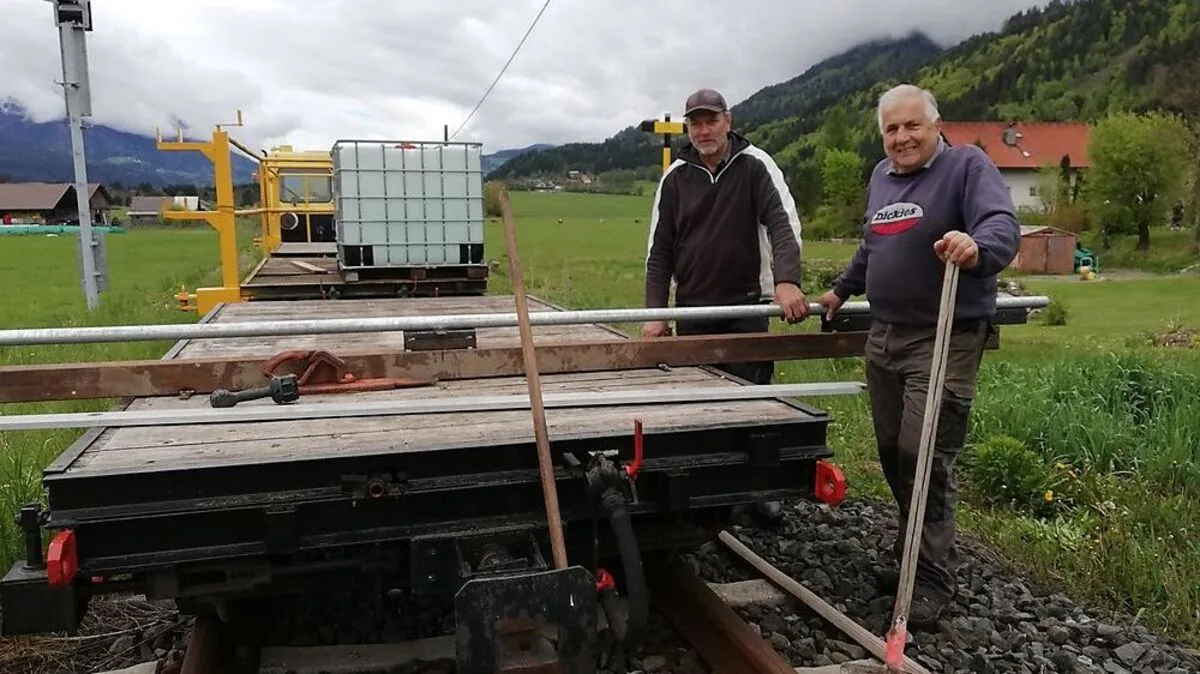 Wilfried Thurner und Horst Zwenig halten die Infrastruktur für den Draisinenverkehr in Schuss