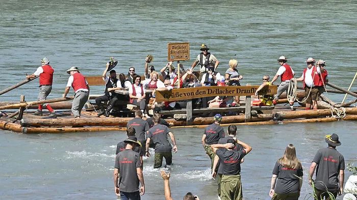 200 Teilnehmer nahmen bei den dritten internationalen Flößertagen im Drautal teil. In drei Etappen waren die Flößer von Oberdrauburg nach Spittal unterwegs.