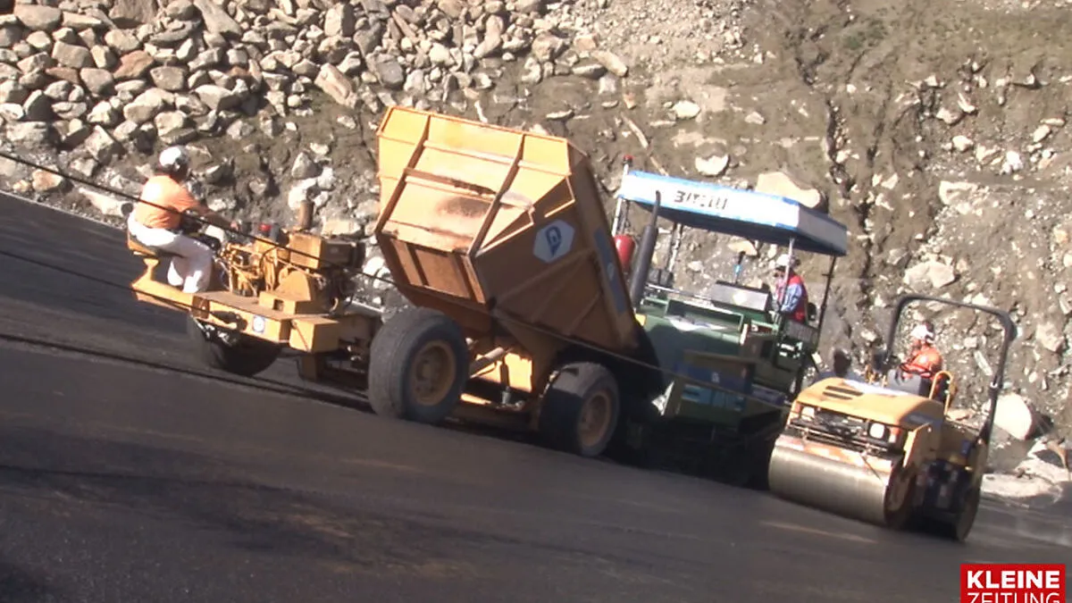 In Fragant am Fuße des Mölltaler Gletschers finden gerade Asphaltierungsarbeiten statt. Das mag nicht spektakulär klingen, aber es handelt sich dabei um Sanierungsarbeiten am Wurtendamm der Kraftwerksgruppe Fragant und somit um die steilsten Asphaltierungsarbeiten in Österreich.
