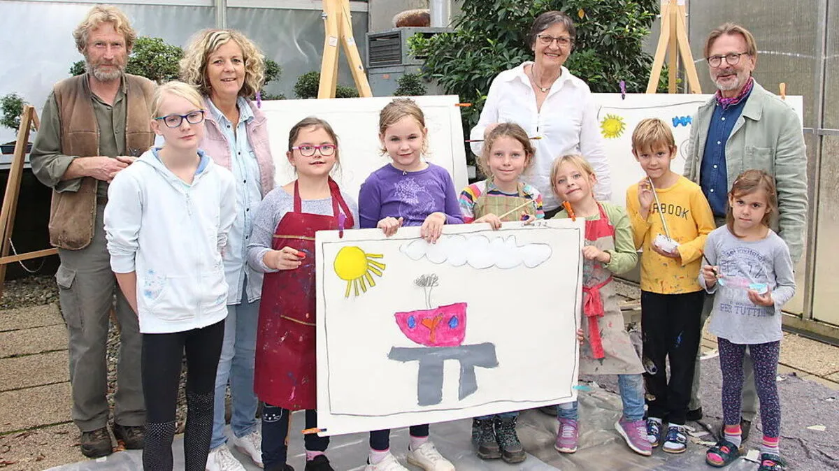 Die Kindermalschule Seeboden malte im Bonsai Museum Baumbilder für eine Ausstellung im Wörthersee-Stadion.