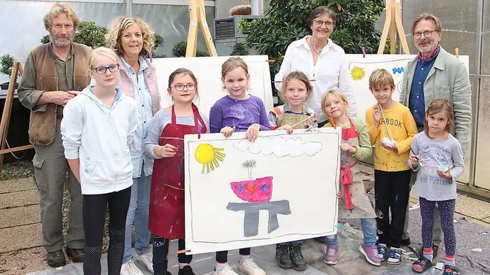 Kinder malen Baumbilder für "For Forest"