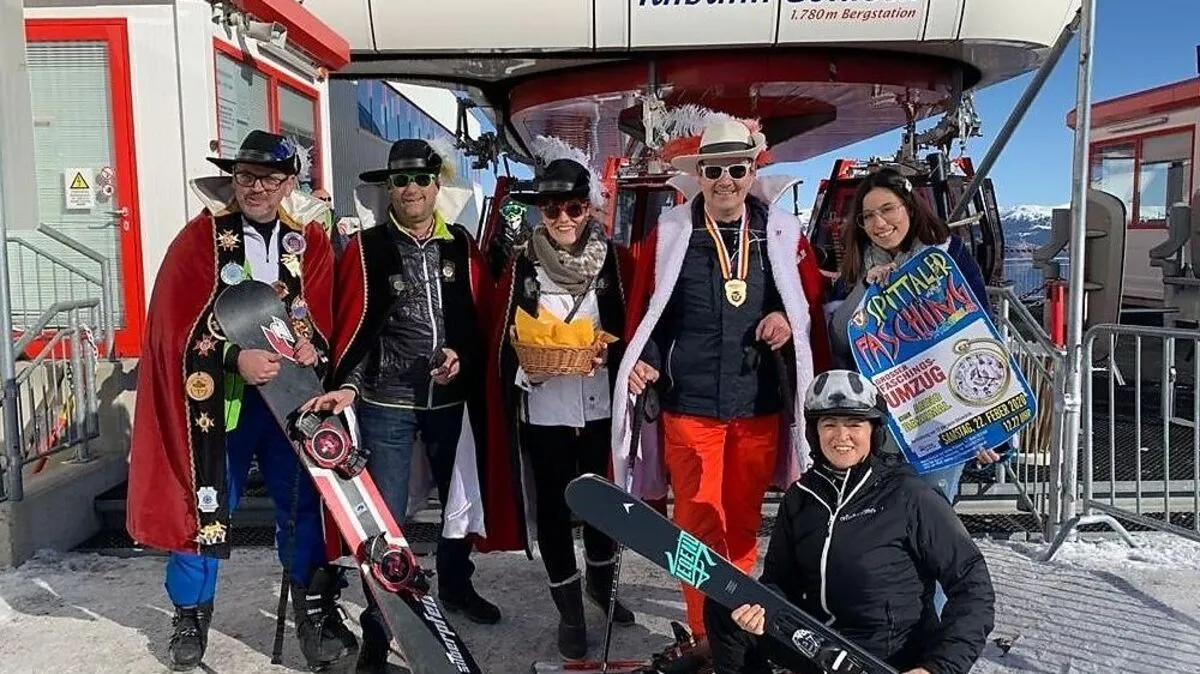 Am Faschingssamstag findet traditionell der große Faschingsumzug durch die Spittaler Innenstadt statt. Gilde warb bei der Goldeck-Bergstation für Teilnahme.