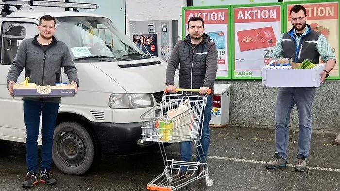 Im Einsatz für die ältere Generation: Florian Umfahrer, Samuel Kury und Nahversorger Martin Filippitsch
