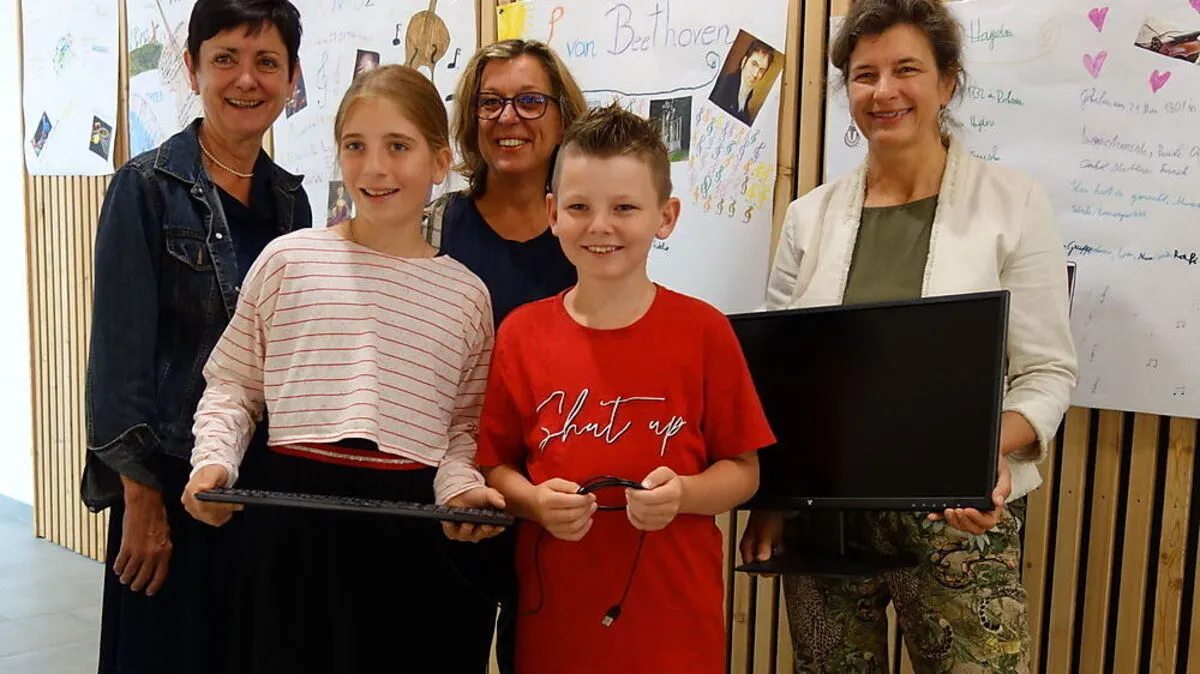 Die Anna-Gasser-Volksschule in Millstatt freut sich über einen PC, der vom Spittaler Autohaus Tuppinger überreicht wurde.