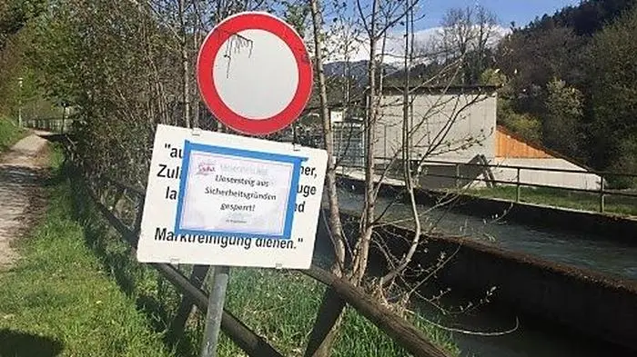 Landesgeologe verfügte Sperre, da Abbrüche im felsigen Gelände und Steinschlag drohen. Die Stadt Spittal lässt Sanierung prüfen.