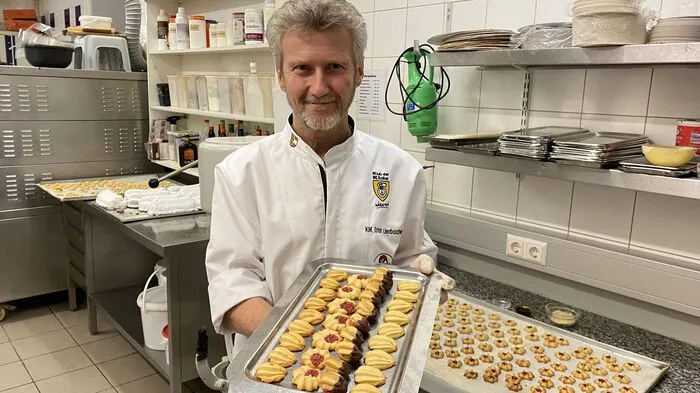 Konditormeister Ernst Lienbacher mit dem frischen Butterspritzgebäck