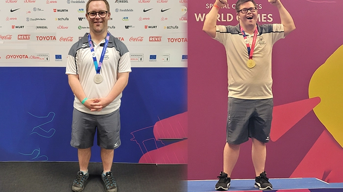 Stefan Strauß und Martin Loipold jubelten mit ihren Familien und Trainerin Lorraine Angerer über Medaillen bei den Special Olympics World Games in Berlin.