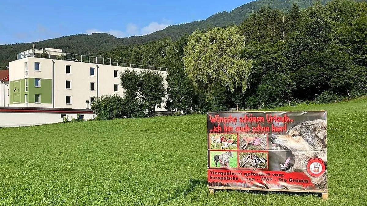 Jene Anti-Wolf-Plakate, die Anfang Juli in Radenthein und auf der Stubeck-Alm in Gmünd aufgetaucht sind, schießen wie die Schwammerl aus dem Boden. Beim Trebesingerhof wurde in der Nacht auf Sonntag eines aufgestellt, auf dem Weg zur Bergfriedhütte, ebenfalls Gemeinde Trebesing, gibt es ein weiteres. Bürgermeister Arnold Prax: "Zumindest jenes neben dem Hotel wird spätestens am Dienstag entfernt, weil sich der Grundbesitzer einsichtig zeigt. Gegen das Zweite habe ich keine Handhabe." Er verstehe die Landwirte, die auf die Wolfsproblematik aufmerksam machen wollen, aber die Botschaft auf den Plakaten sei zu drastisch formuliert.