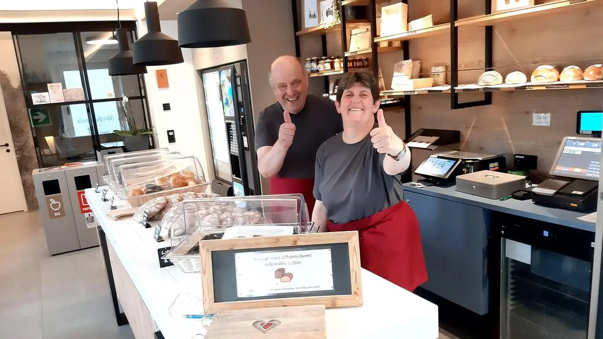 Die Kaffeestube der Lebenshilfe im selben Geschäftslokal ist von Montag bis Donnerstag von 8.15 Uhr bis 12 Uhr geöffnet, an den Freitagen von 13.15 Uhr bis 16.30 Uhr. „Wir haben mit acht Klienten begonnen“, erinnert sich Weiler. Inzwischen haben zwölf Menschen mit Behinderungen in der „Stroßa Speis“ einen Arbeitsplatz gefunden. Zusätzlich zu Kaffee, Tee und frischen Mehlspeisen kann man bei ihnen nun auch ein einfaches Frühstück einnehmen: Es gibt Semmel oder Kornspitz mit Butter und Marmelade. Die Mannschaft kümmert sich außerdem um die Bestückung der Verkaufsregale.