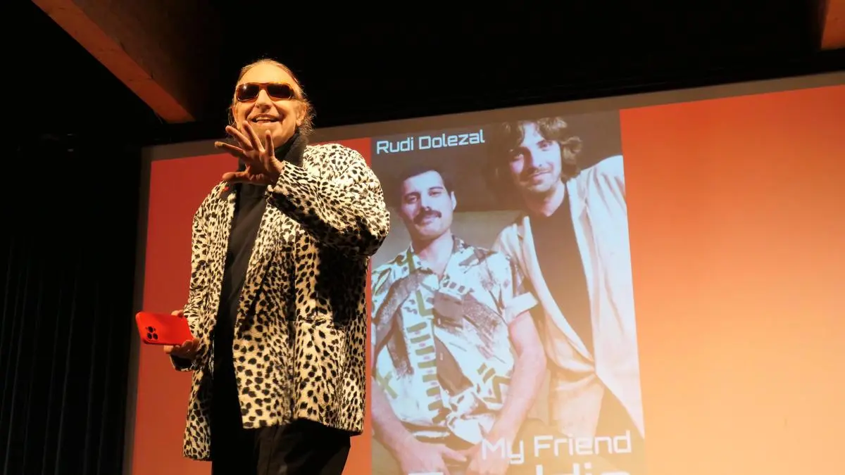 „Nicht alles, was wir erlebt haben, werde ich euch heute erzählen können“, lächelte Rudi Dolezal bei seinem Auftritt in der Aula des Lienzer Gymnasiums, zu dem die Stadtkultur eingeladen hatte. Verschmitzt blickte er über den Rand seiner Brille. Dennoch verriet er launig, dass ihm der legendäre Queen-Frontmann Freddie Mercury bei einer Party in seinem Haus in England einmal spontan und höchstpersönlich eines der vier Schlafzimmer für eine „intensive Besprechung“ mit einer Sängerin vorbereitet hatte. Dolezal verpasste seinen Rückflug nach Wien.