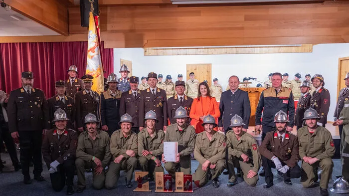 Die Bewerbsgruppe Sillian 1 mit Funktionären und Ehrengästen