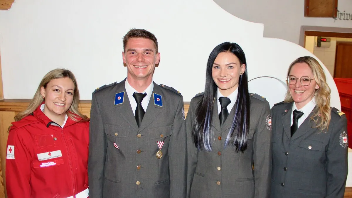 Kassierin Laura Gasser, Ortsstellenleiter-Stellvertreter Michael Oberschneider, Ortsstellenleiterin Lorena Bstieler und Schriftführerin Karin Presslaber