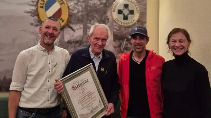Helmut Ebner gehört dem alpinen Verein unter Obmann Stefan Stern seit 70 Jahren an. Rudi Fröschl und Johann Wibmer wurden für 50 Jahre Vereinstreue geehrt.