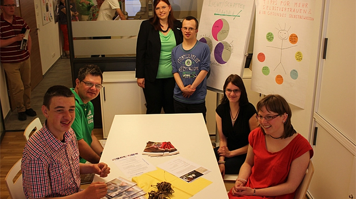 Zwischen selbst gemachter Dekoration strahlten Gerald Senfter, Günter Lercher, Andreas Bodner, Anni Obetzhofer und Maria Leitner im Hof der Wohnanlage Glöckelturm.