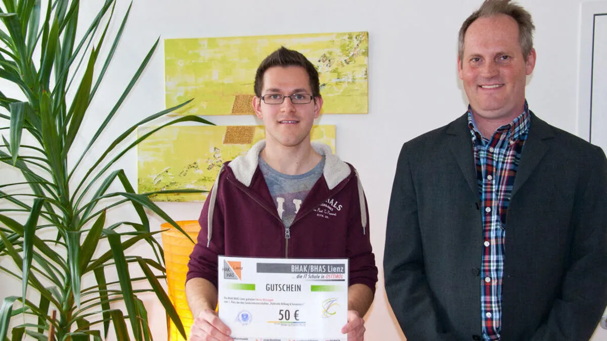 In einem Wissensquiz zum Thema "Politische Bildung" errang der Matreier HAK-Schüler den Landesmeistertitel. Jetzt fährt er gemeinsam mit seinem Professor Christian Osterer zum Bundesfinale nach Linz.