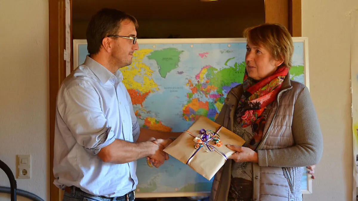 Cilli Wernhart überreichte die Einkaufsgutscheine an Egon Wibmer