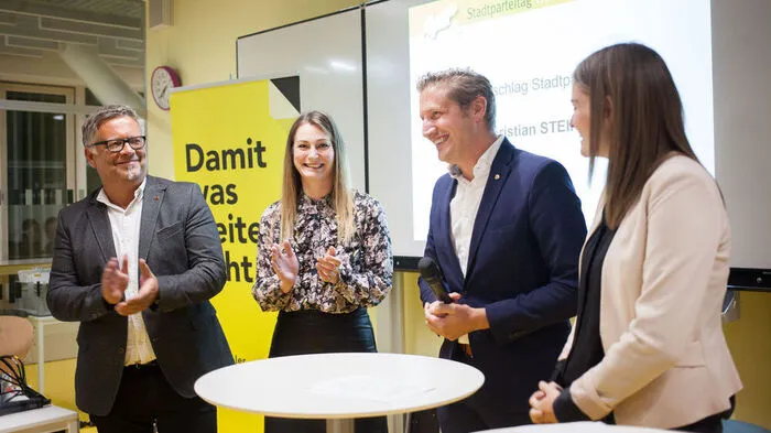 Christian Steininger ist Obmann der Stadt-ÖVP. Auch zwei Frauen im Führungsteam. Harald Mahrer war da.