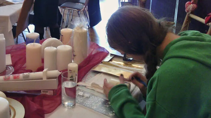 Im Rahmen einer „lebenden Werkstatt“ wurde demonstriert, wie man Kerzen verziert.