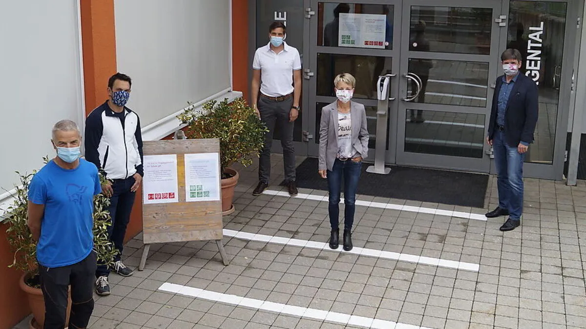 Pädagogen bereiten sich auf Start vor: Schulwart Alois Mariacher, Volksschuldirektor Stefan Bachmann, Mittelschuldirektor Wörister, Kindergartenleiterin Irmgard Prosch und Bürgermeister DietmarRuggenthaler
