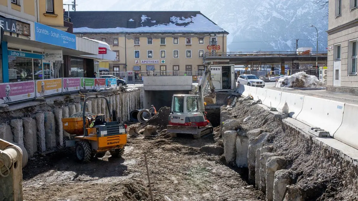 Am neuen Mobilitätszentrum wird in allen Bereichen gearbeitet – der Schwerpunkt liegt derzeit im Bereich der künftigen Geh- und Radwegunterführung sowie am Vorplatz und den Bahnsteigen.