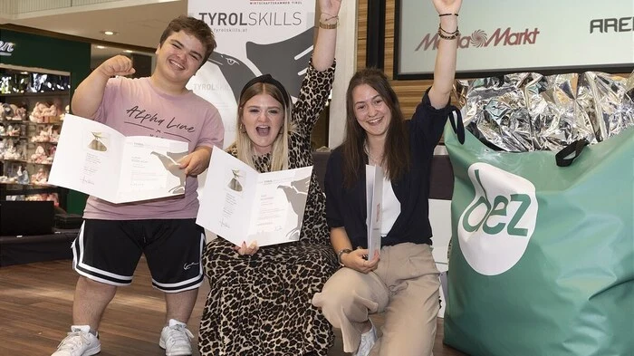 Junge Verkaufstalente stellten im DEZ ihr Können unter Beweis. Die Osttiroler Tally-Weijl-Mitarbeiterin siegte gegen 13 weitere Teilnehmer. Dritte wurde H12-Mitarbeiterin Leonie Raneburger.