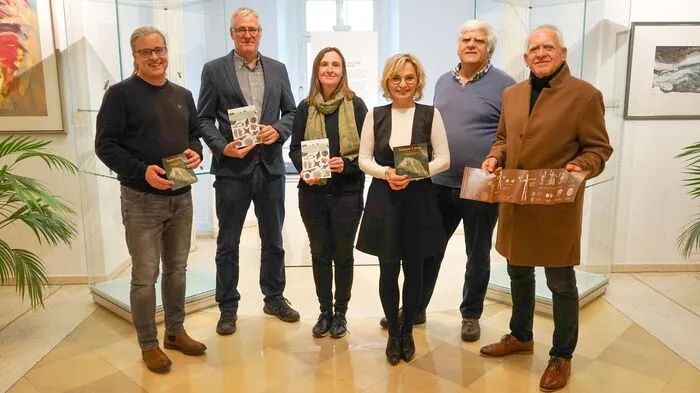 Archäologe Gerald Grabherr, Johannes Pöll vom Bundesdenkmalamt, Archäologin Barbara Kainrath, Bürgermeisterin Elisabeth Blanik sowie Josef Kalser und Gottfried Kalser