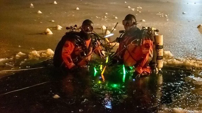 Taucher der Österreichischen Wasserrettung versenkten einen Christbaum