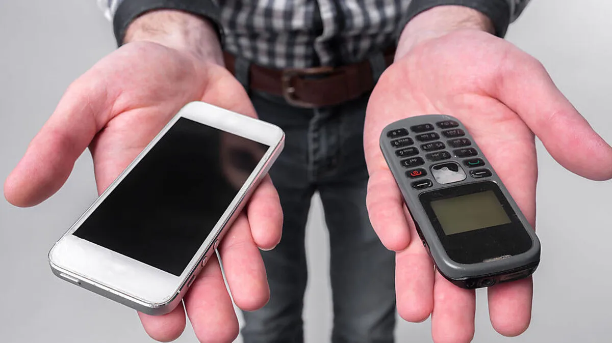 Smartphones (links) können wesentlich mehr als ihre veralteten Vorgänger. Nicht jeder will das aber