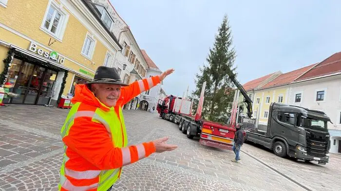 Der St. Veiter Christbaum ist am Hauptplatz angekommen