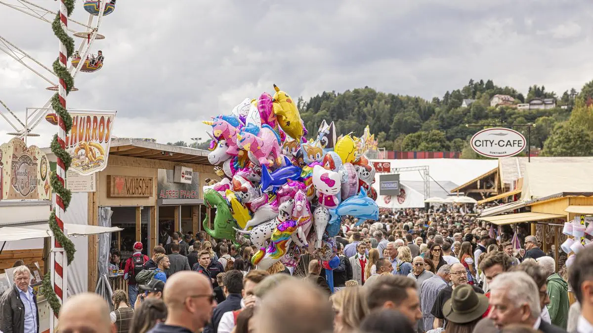 Blick über Menschenmassen am St. Veiter Wiesenmarkt | Kein Regen, am Sonntag Sonne, das perfekte Wiesn-Wetter