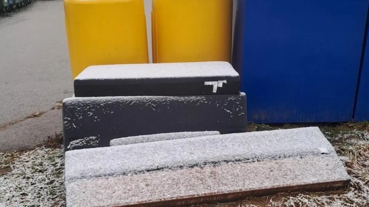 Mehrere Materialien liegen auf dem mit Schnee bedeckten Boden. | Am Bauhof in Gurk wird immer wieder illegal Müll abgelagert