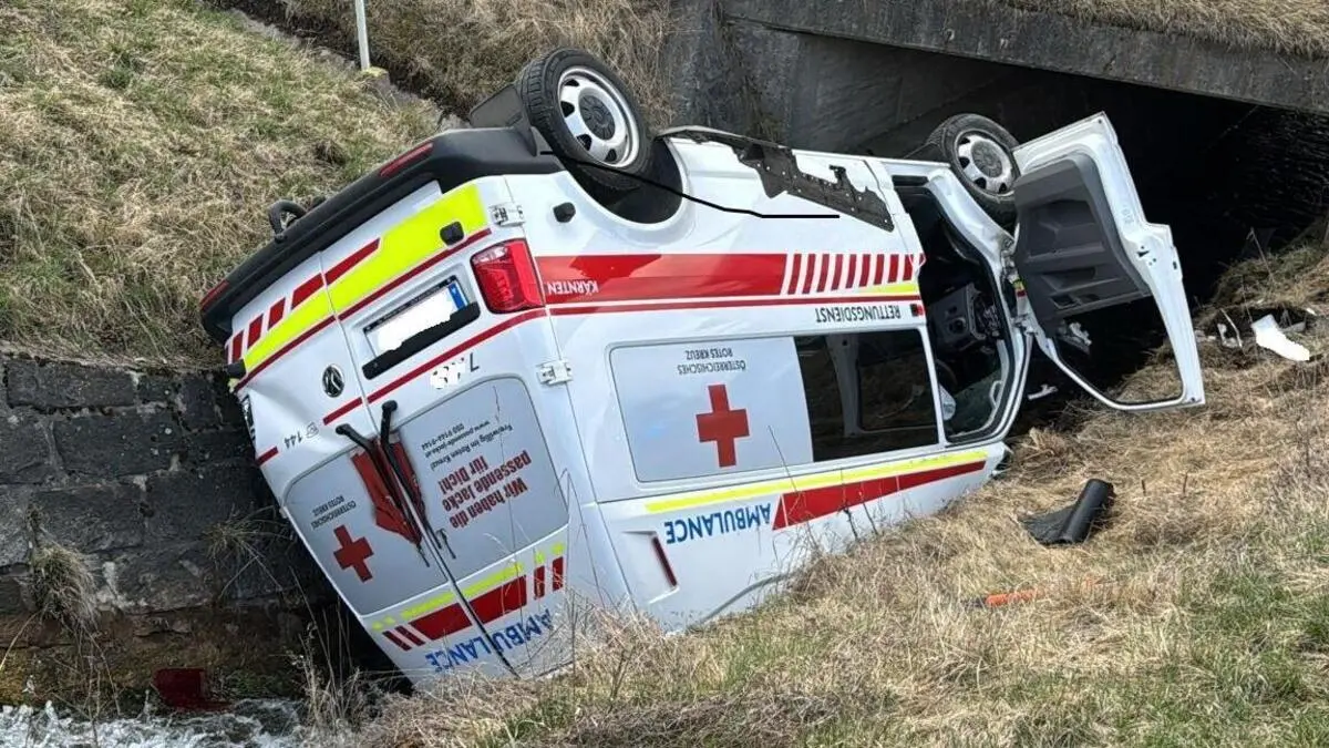 Mehrere Verletzte: Rettungswagen stürzte nach Unfall in Bachbett