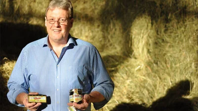 Ein Biobauer bringt Gras ins Glas