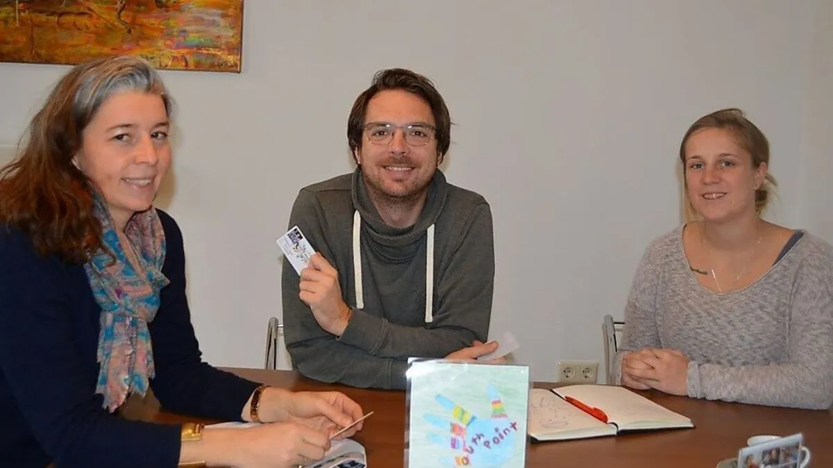 Um den Tisch sitzen Tom Ogris, der Chef des Klagenfurter Grafikunternehmens MajorTOM, die Leiterin des Jugendzentrums von pro mente kijufa in St. Ruprecht, dem Youth Point Gabriele Gössnitzer-Gharabaghi sowie die Jugendbetreuerin Lisa Reimüller.